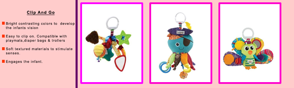 Lamaze toys are designed to spark little triumphs at every stage of baby’s development. Created in conjunction with child development experts, Lamaze toys inspire healthy play and learning. Lamaze toys encourage baby to grow and develop through features that promote together time between parent and baby and activities that encourage baby to explore and learn independently. The high quality, bright colors, friendly faces, crinkly fabrics and contrasting patterns of Lamaze toys have made them a favorite of parents, babies and experts for more than two decades.